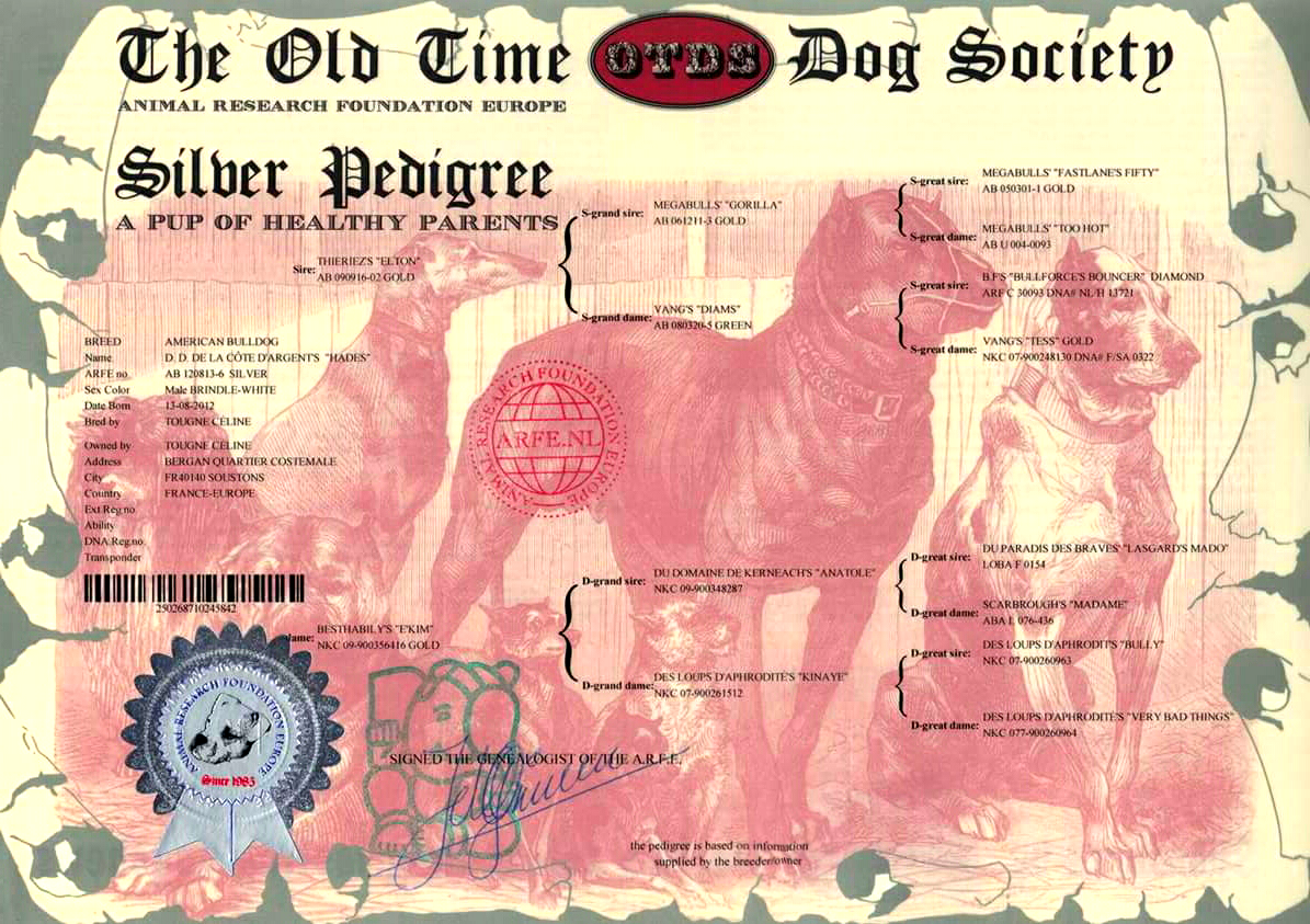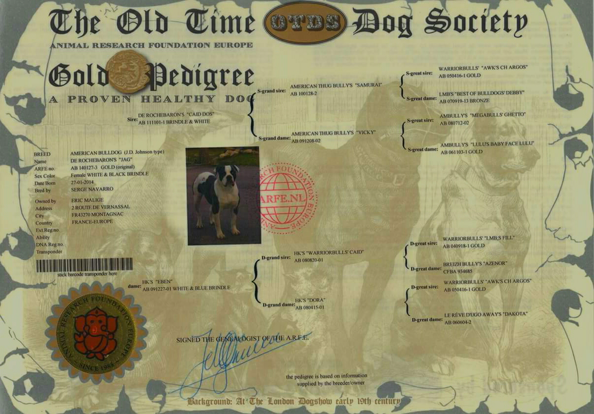 Née le 31/08/2015 ( issue du mariage de notre couple de bouledogue americain , Jag et Hadés.)